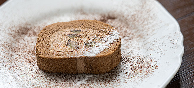 今秋はショコラクリームの中に京都・丹波産の高級栗の自家製渋皮煮を入れ、季節らしくふんわり&しっとりとした味わいに仕上げました。