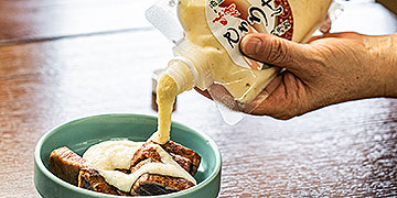 4種のチーズ(マスカルポーネ、モッツァレラ、リコッタ、パルミジャーノレジャーノ)が包まれたリング状のショートパスタ。しっかりとした小麦の味わいと、口の中に広がるチーズの香りが様々なソースの美味しさを引き立てます。スープなどにも使用できて、これからの季節に打ってつけの食材です。 |