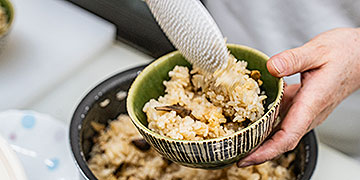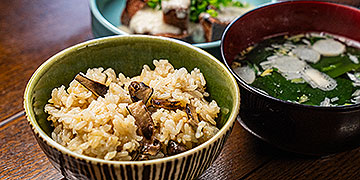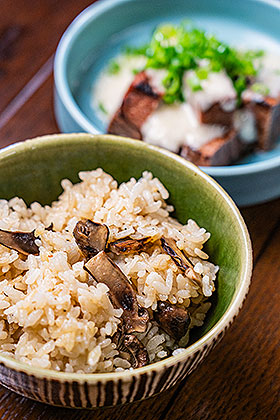 旨味たっぷりの「利尻昆布のダシ」を効かせてじっくりと炊き上げます。お釜の蓋を開けた瞬間、厨房中に松茸の香りが広がって、「秋」到来を感じさせます。本当にいい香りです。