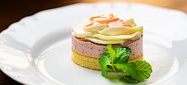 「ビオレソリエス」独特のプチプチした食感と、ほのかに効かせたアニスやシナモンの香りが、秋の深まりを感じさせるドルチェに。