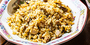 家庭で「ご飯がぱらぱら」の美味しいチャーハンを作るコツは、卵とご飯をよく混ぜ合わせて「TKG」にしてから炒めることです。ただ、それだとふわふわ卵が犠牲になってしまうので、今回その方法を応用して卵白のみをご飯と混ぜ合わせ、卵黄は後から炒めるという方法を試してみました。