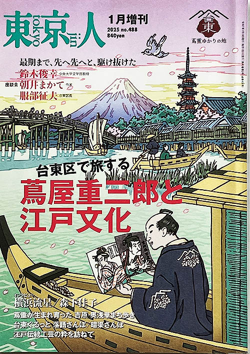この号は、NHK大河ドラマ「べらぼう」のメインキャスト特集で「台東区で旅する蔦屋重三郎と江戸文化」でした。1月5日スタートだったので、当然、この番組の舞台となった江戸・新吉原と蔦屋重三郎、喜多川歌麿、東洲斎写楽などの紹介記事満載でした。