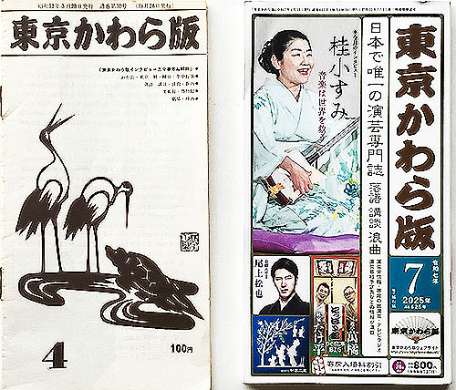 昭和49年11月28日から発行されている日本で唯一の演芸専門誌です。発行当初は、落語会情報は少なく(失礼)、都内での寄席、ホール落語会、独演会、講談・浪曲・新内などの公演情報をメインに、縁日と年中行事、美術館・博物館情報、そして都内での劇場、名画座などの情報誌でした。当然、都内の寄席・演芸場・書店での販売と限られていました。私は、昭和52年4月号(通巻第30号)からの定期購読者です。最新の通巻第625号まで、断捨離は出来ず、すべて永久保管を続けております。