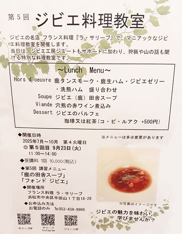 尚、ジビエ料理は猪と鹿は常時OKです。