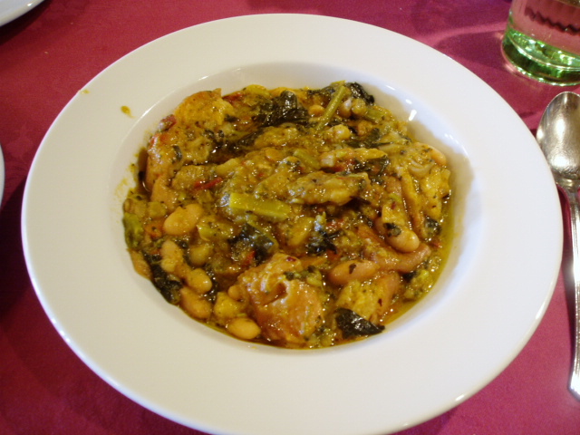 トスカーナ地方の農家さんのお料理。寒い冬に収穫できる野菜をたっぷり使い、余ってカチカチになったトスカーナパンをも加え、何度も何度も付け足しながら煮込んで(ribollire)食べる、ribollita。引き継がれる伝統料理です。