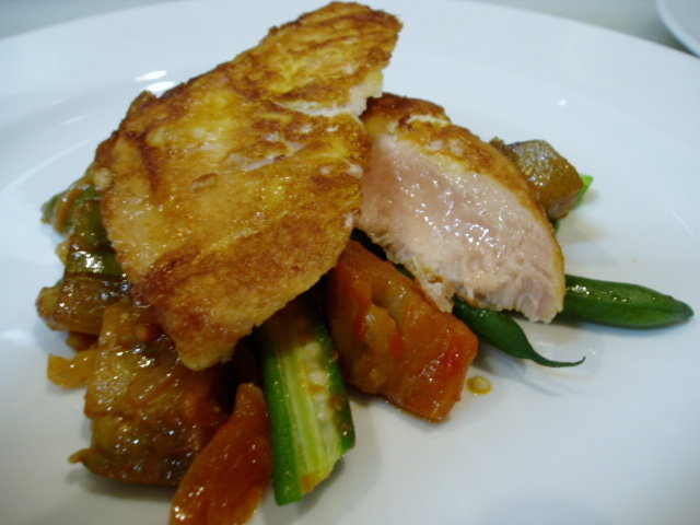 メカジキのソテー、野菜のアグロドルチェ添え。