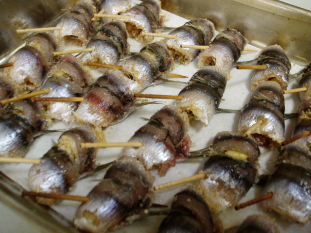 何でもこの形がオナガムシクイ属のシチリアの小鳥(beccafico)に似ているそうで、この名前がついたそうで、まっ、この小鳥を見た事はないのですが、言われてみればイワシの尾っぽがクチバシっぽい。鳥に見えてきます。