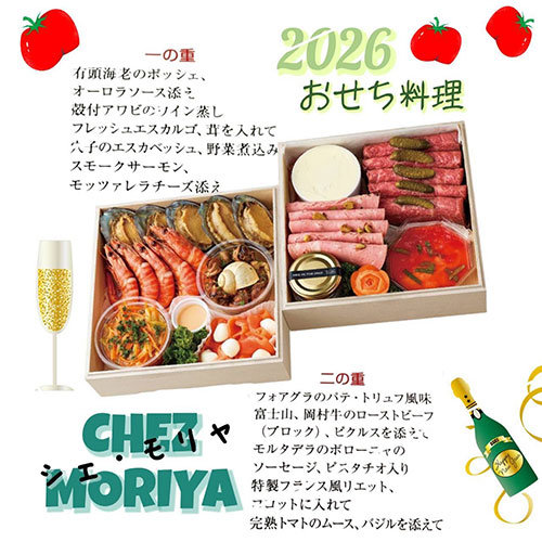2026年シェ・モリヤ特製おせち料理も合わせて予約を受け付けます。