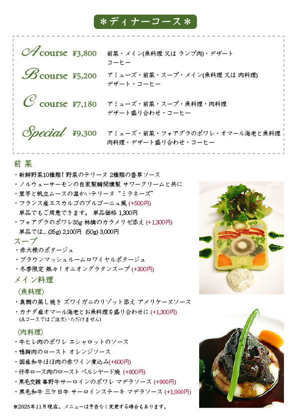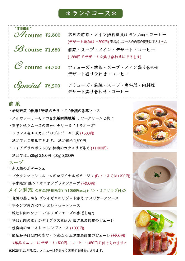 通常メニュー12月20日から1月11日までの期間は
